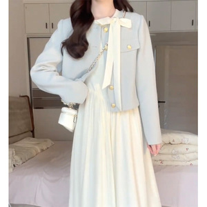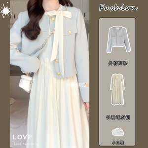 セット女性2025春新作感小香風コート蝶結び長袖ワンピースウエストロングスカート潮
