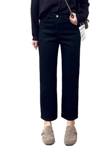 大きいサイズの黒いストレートのジーパンの女性の春秋の新型のナシの形の太った妹の腰の弾力性の9分のタバコの管のズボン