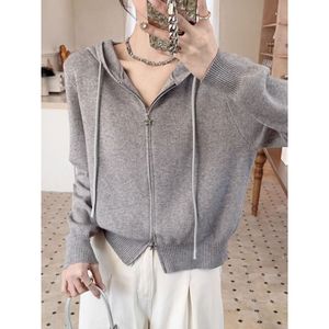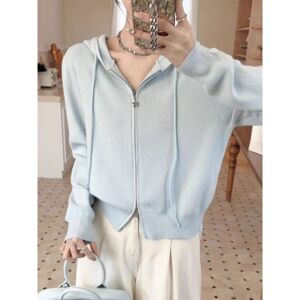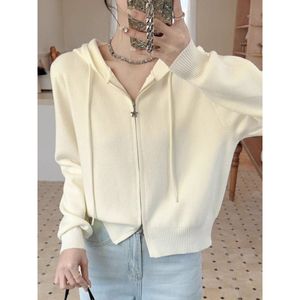 カジュアルなネット版の帽子のジッパーのカーディガンの修身の短いニットの女性の2025秋の学院の風の韓国版は帽子のシャツを重ねて着ます。