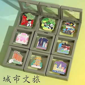 中国風文創観光ブローチ人気観光スポットバッジ地区ランドマーク観光スポット国潮都市記念品ギフトボックス