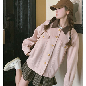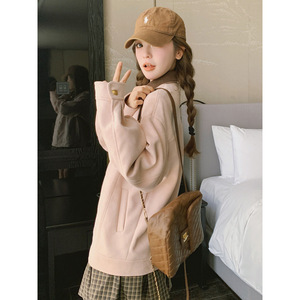 ピンクのコートの女性春秋の新型の韓系学院の風の甘い年齢のカジュアルなジャケットのカーディガン