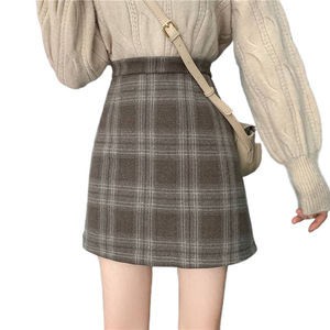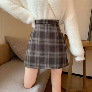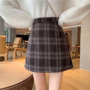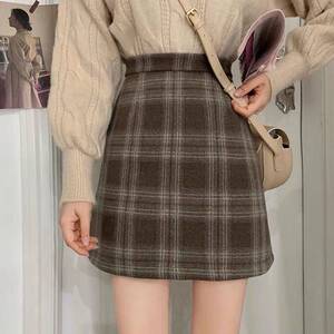 毛呢格子半身裙女装2025春秋冬新款高腰复古a字裙百搭包臀短裙子