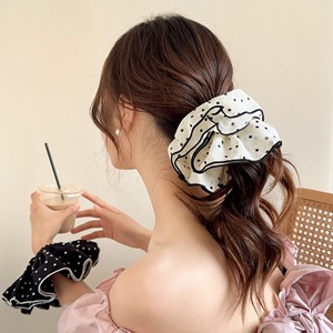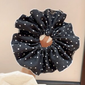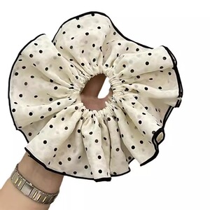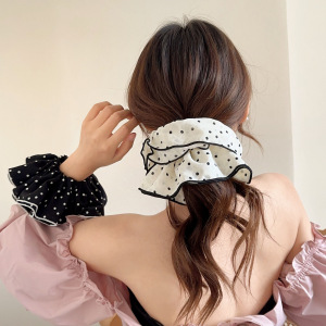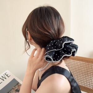 フランスの高級感の白黒の波のポイントの大きい腸の輪のスカートの振り子のひもの百合の低い馬尾の皮の筋の髪のひもの団子の頭