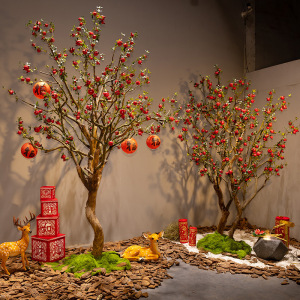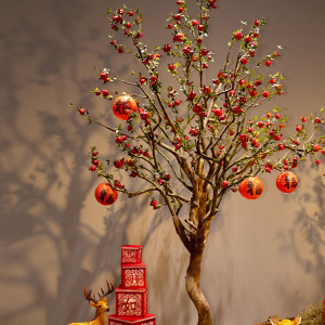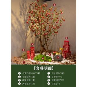 逸品のザクロの木のシミュレーションの緑の植栽の装飾の着地の置物の新年の赤い包みの願い事の木の大型の果物の偽の木の室内