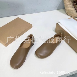 高版2025小众新款一脚蹬乐福鞋简约真皮平跟两穿踩跟舒适穆勒单鞋