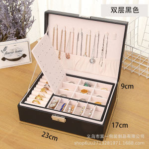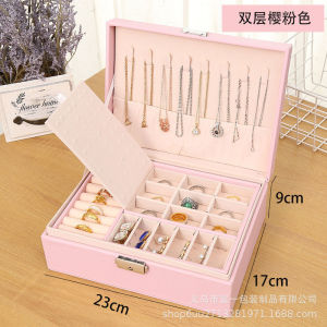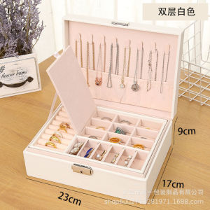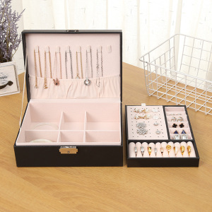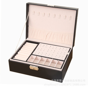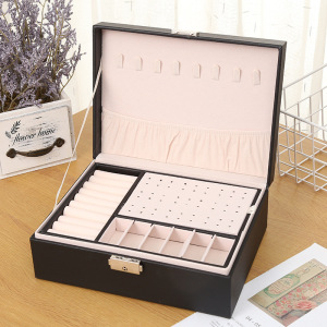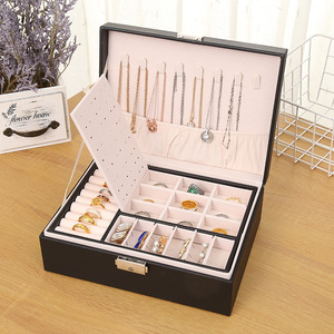 クリエイティブな大容量ジュエリー収納ボックス、シンプルな二層PUレザージュエリーボックス、工芸品ネックレスと指輪収納ボックス