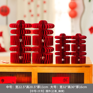 喜字ハニカムボールの置物の結婚室の配置の婚約式のデスクトップの装飾の立体的な双ヒの結婚用品の大全書