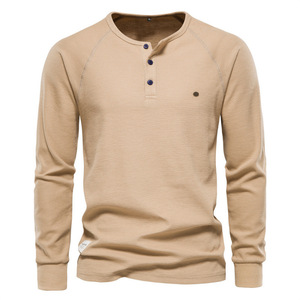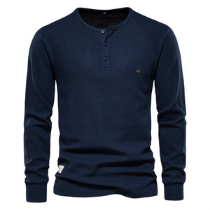 ヨーロッパコードクロスボーダー秋冬メンズカーディガンヘンリーネック長袖ワッフルtシャツ男性純色外国貿易メンズtシャツ