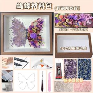 新緑水晶ドライフラワー材料バッグ手作りドライフラワー石絵紫水晶蝶フォトフレーム創意プレゼントdiy