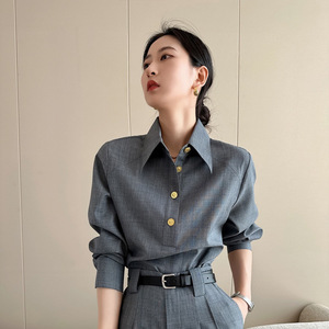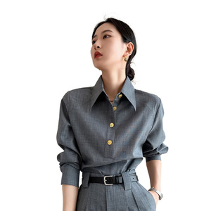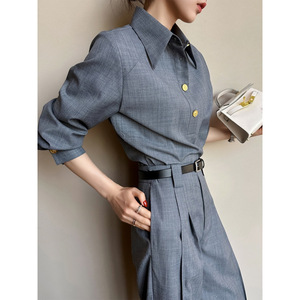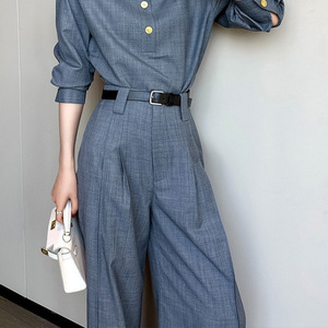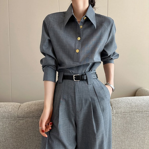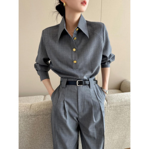 2025秋には高級感のある洋服の雰囲気が強い女装グレーシャツスーツのズボンセットを着ます。