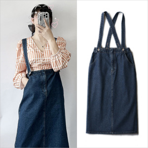 春夏の新スタイル Liu Yifei の同じプリントチェック柄長袖シャツトップとサスペンダースカート
