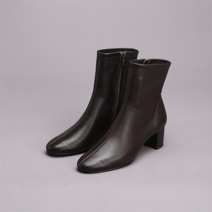 丸い頭の太さと側のファスナーのショートブーツの女性2025年の冬の新型の女性の靴は簡単に通勤します。
