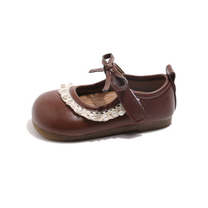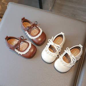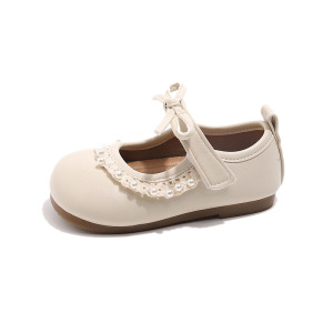 女の子の蝶結びの王女の靴2025の新型の春秋の子供の小さい革靴の女の子の洋気の靴のレースの豆の靴
