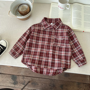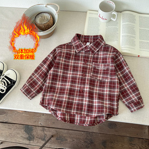 男の子用チェック柄シャツ 秋冬2025新作 子供服 かっこいい男の子用長袖シャツ 裏起毛薄手ジャケット