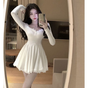 高品質の爆発的なギャルのワンピース春と秋の新型ウエストの気質を収めます。