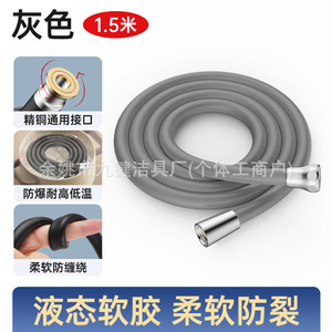 グレー 1.5m シリコン チューブ シャワー ホース ダブル銅製ビッグ キャップ