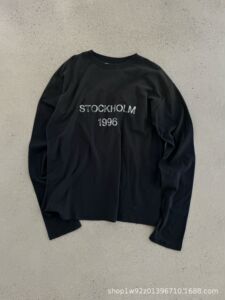 高品質の古い、ほつれ、汚れた1996プリント長袖Tシャツ、ルーズでカジュアルな男性と女性のボトムスTシャツ