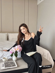 韓国版パジャマ女春夏JIEAINA純欲はブラ純欲風三点セット胸付きストラップセットを持っています。