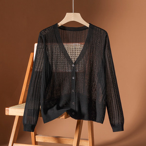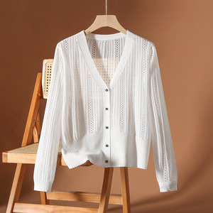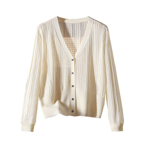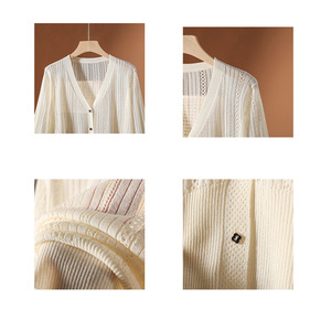 Vネックの気質の麻花のニットのカーディガンの上着の女性2025春夏の新型のゆったりした大きいサイズはサスペンダーのスカートの日焼け止めのシャツを配合します。