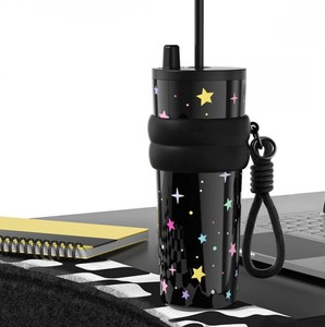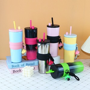 高颜值ポータブルストラップ付きアイスバーカップ 316ステンレス製保温カップ 大容量ストロー付き人形付き車載カップ アウトドア用