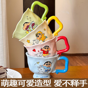 クレヨンしんちゃんマグカップかわいい漫画セラミックカップ高颜値カップルコーヒーカップ子供朝食ミルクカップ