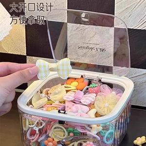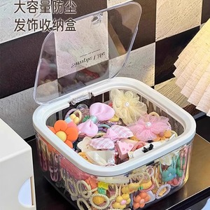 弾き蓋付きヘアアクセサリー収納ボックス、ゴムバンド、ネックレス、ヘアピン、ヘアリング、ヘアゴム、ヘアフラワー収納、卓上透明ボックス