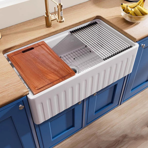 アメリカの台所の陶磁器の水槽の野菜を洗うたらいの復古の半埋め込み式の家庭用の大きい単槽の超深い一体のたらい