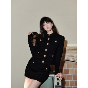 小香風スーツ高級感のある有名な女性は、金属製のニットコートを着て、お尻の半身のスカートを二枚の女性を包んでいます。