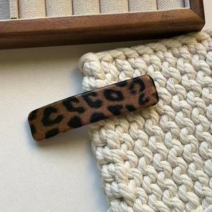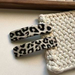 2025春夏新款豹纹仿皮发夹BB韩版复古长方刘海高级侧边发卡碎发