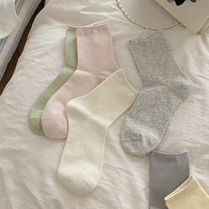 suxinaimin 春秋薄手無地ソックス インス風シンプルモランディカラー 秋用ショートソックス レディース綿ソックス