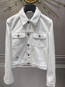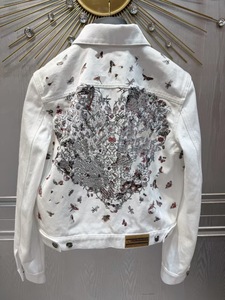 25早春新作小蜂刺繍ホワイトコットンデニムジャケット