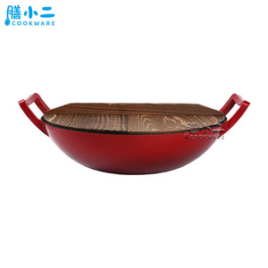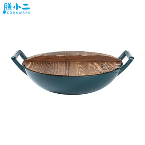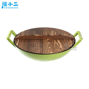 エナメル鍋36cm炒め鍋鋳鉄エナメル厚手両耳炒め鍋木蓋付きcast ronwok pan