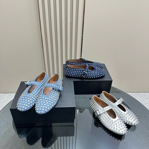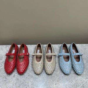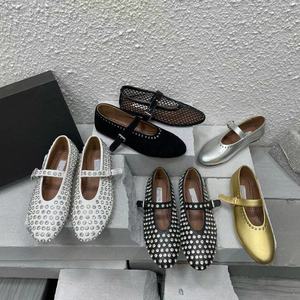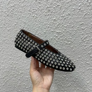 新款圆头玛丽珍单鞋女平底舒适芭蕾跳舞鞋网面单鞋钻面单鞋
