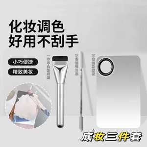 下地化粧三点セット一字型平頭ブラシ指輪パレット上化粧神器軽薄パフ携帯化粧道具