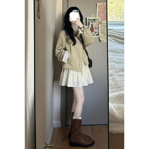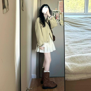 2025 新しい小柄なカーキアメカジショートジャケット女性のための初春デザインレトロニッチジャケットトップ