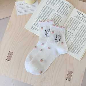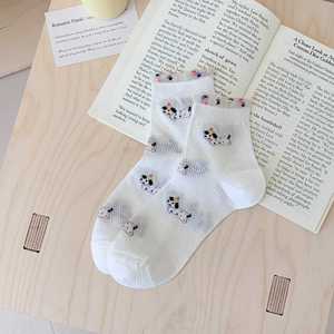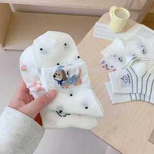 骨なしの白い子犬のメッシュの靴下の子供の中筒の靴下のinsの潮の蝶結びの春夏の薄いモデルのアニメのかわいいソックス