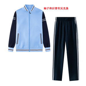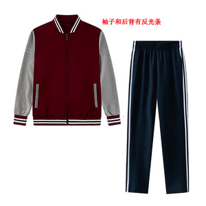 春秋季中小学生校服套装三件套初中生高中蓝白运动服酒红外套上衣