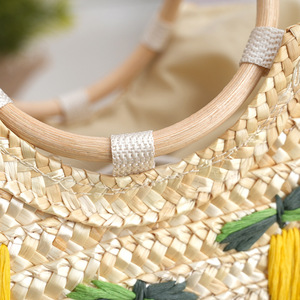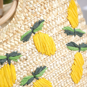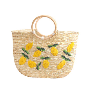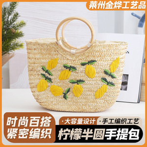 2025新型レモンハンドバッグ半円バッグ麦わらお下げ手作り刺繍対外貿易バッグ市場料理バスケット