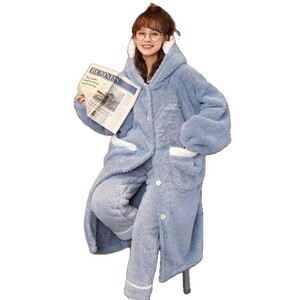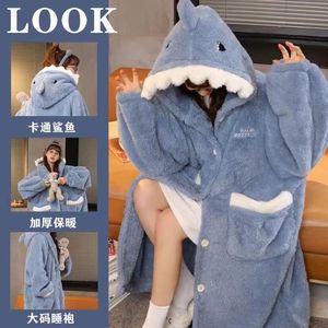 サンゴのパジャマの女性2025年の新型秋冬の寝衣の長いネットの赤い色はフランネルの家庭服のサメを厚くします。