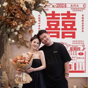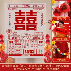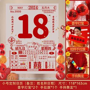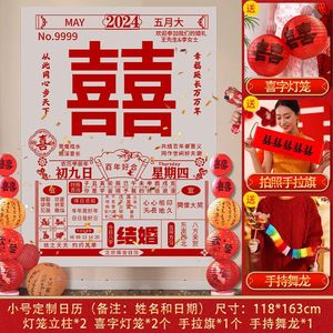 結婚写真道具喜字カレンダーのバナーは結婚部屋の装飾に花嫁の朝の写真の背景壁を飾っている
