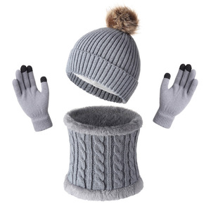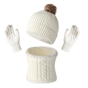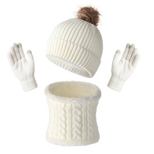 源メーカー直供冬保温ファッション快適毛玉スタイルニット帽子マフラー手袋三点セット
