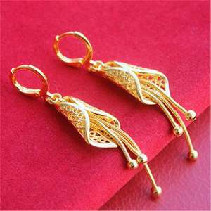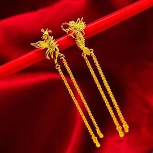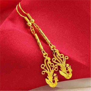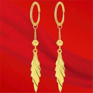 人気のベトナムサンドゴールドイヤリング、女性用イヤリング、イヤリング、孔雀と鳳凰の転送ビーズ、葉のタッセル、イヤリング、卸売