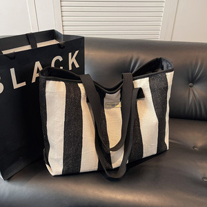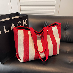 2025ファッションストライプ軽量片肩キャンバススポーツフィットネスショッピングバッグ大容量出張旅行荷物収納