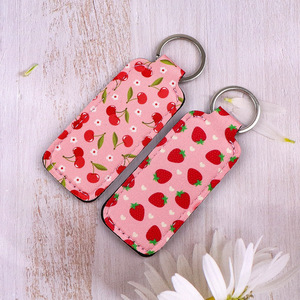 ストロベリーチェリー口紅カバーキーホルダーポータブルダイビング素材香水ボトルカバー口紅カバーダイビング素材キーホルダー