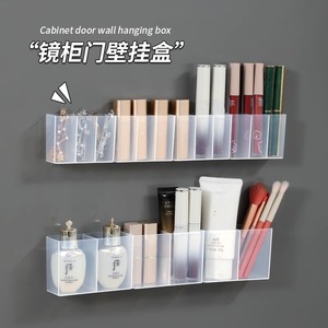 3格の鏡の棚の収納箱の扉のトイレの壁掛け式の穴を開けないで透明で簡単な口紅の化粧品の仕切り箱