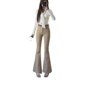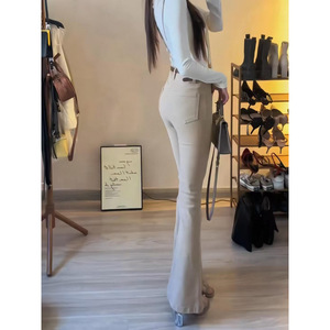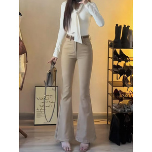 カーキ色のコンビネーション弾力のあるミニラップジーンズの女性2025春の新型のハイウエストはやせています。