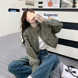 緑の短い工装コートの女性2025春秋の新型韓国系独特なデザイン感カジュアルジャケットの上着