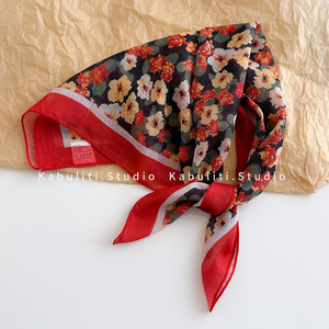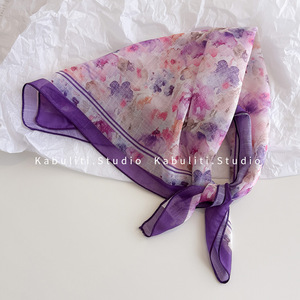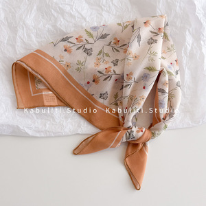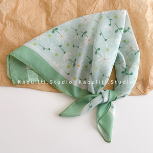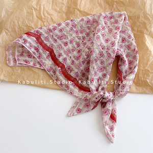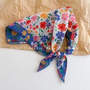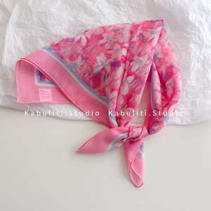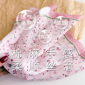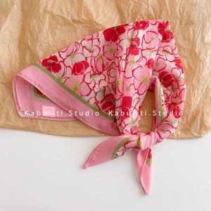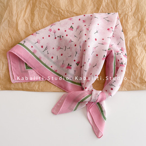 丝巾女棉麻小方巾韩版甜美粉碎花包头巾防晒装饰拍照空调房披肩潮