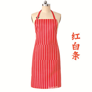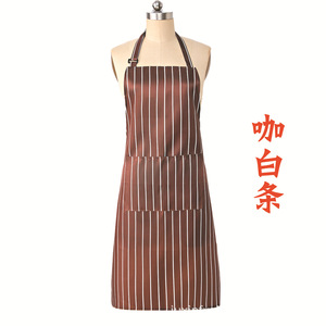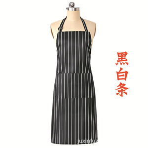 白黒ストライプ柄エプロンホテルレストランカフェ首エプロンシェフ作業服防汚ロングエプロン
