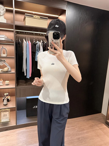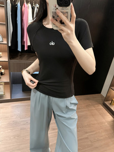 オリジナルALO2025春夏万能レタープリントラウンドネックショート丈半袖Tシャツレディーストレンドクール万能半袖
